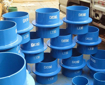 B型剛性防水套管適用于管道穿墻處不承受管道振動和伸縮變形的構(gòu)(建)筑物,管道穿墻處空間有限或管道安裝先于構(gòu)(建)筑物或管道的更新改造。對于地震設(shè)防要求的地區(qū),如采用剛性防水套管,應在進入池壁或建筑物外墻的管道上就近設(shè)置柔性連接。B型剛性防水套管適用于球墨鑄鐵鋼管及鑄鐵管。